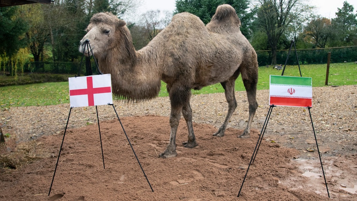 คามิลล่า อูฐเพศเมียนักพยากรณ์ทำนายผลการแข่งขันล่วงหน้า ด้วยวิธีเลือกธงชาติระหว่างอังกฤษกับอิหร่านที่เหน็บอาหารไว้หลังธง ปรากฏว่า เจ้าคามิลล่าเดินตรงไปหาธงเซนต์จอร์จของเมืองผู้ดีแบบไม่ลังเล เป็นสัญญาณบอกว่า อังกฤษน่าจะคว้าชัยชนะได้